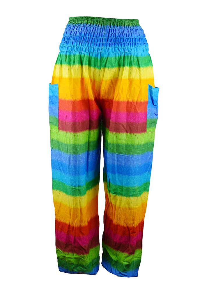 Trousers Genie Design Straight Leg With High Waist 2 Pockets Light Weight Rayon Rainbow Colour