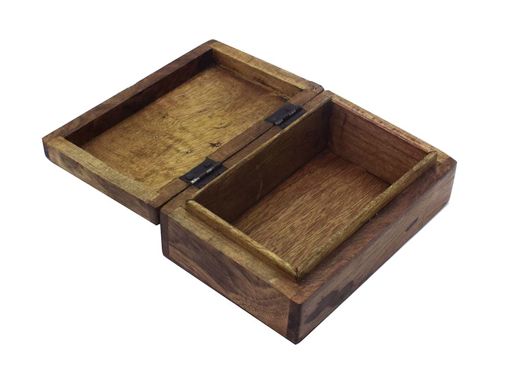 Wooden Box Square With Pentagram On Metal Circle And Carved Floral Design Made From Mango Wood 6X2.5X4 Inch